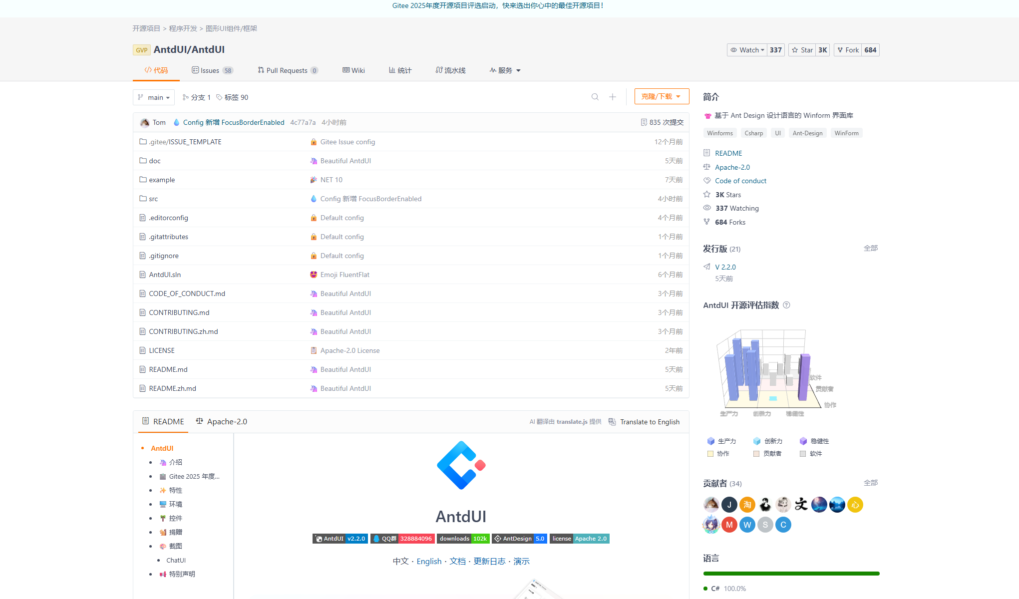 项目描述:基于 Ant Design 设计语言开发的 Winform 界面库