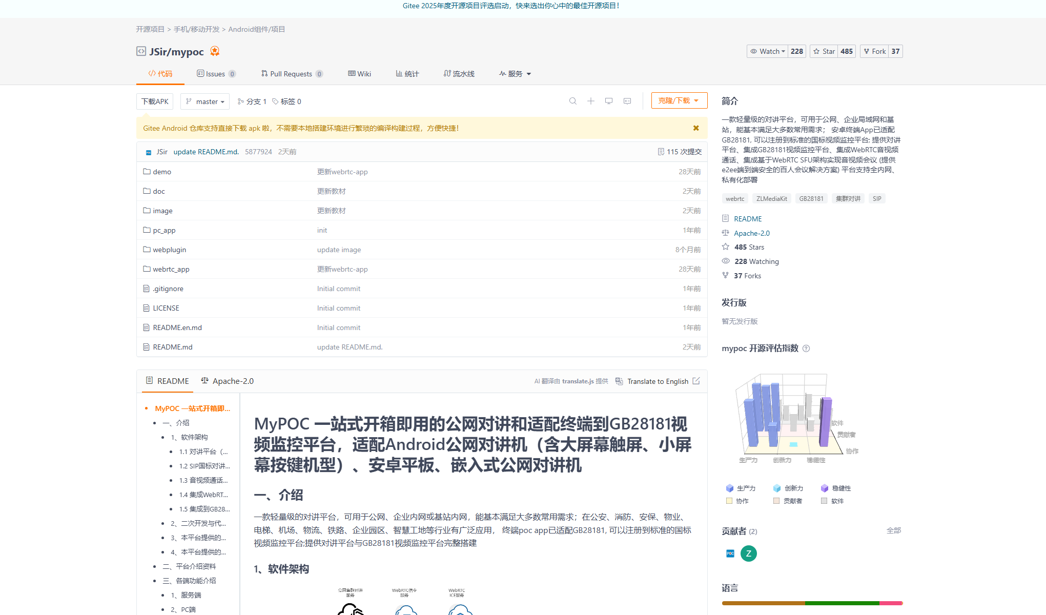 项目描述:这是一款轻量级对讲平台,适用于公共网络、企业局域网及基站环境,能够基本满足大多数日常通信需求;其安全终端应用已适配GB28181标准,可注册至国标视频监控平台;该平台集成对讲系统、GB28181视频监控平台、WebRTC音视频通信功能,并基于WebRTC SFU架构实现音视频会议(提供端到端加密的百人会议安全解决方案),同时支持全内网及私有化部署。
