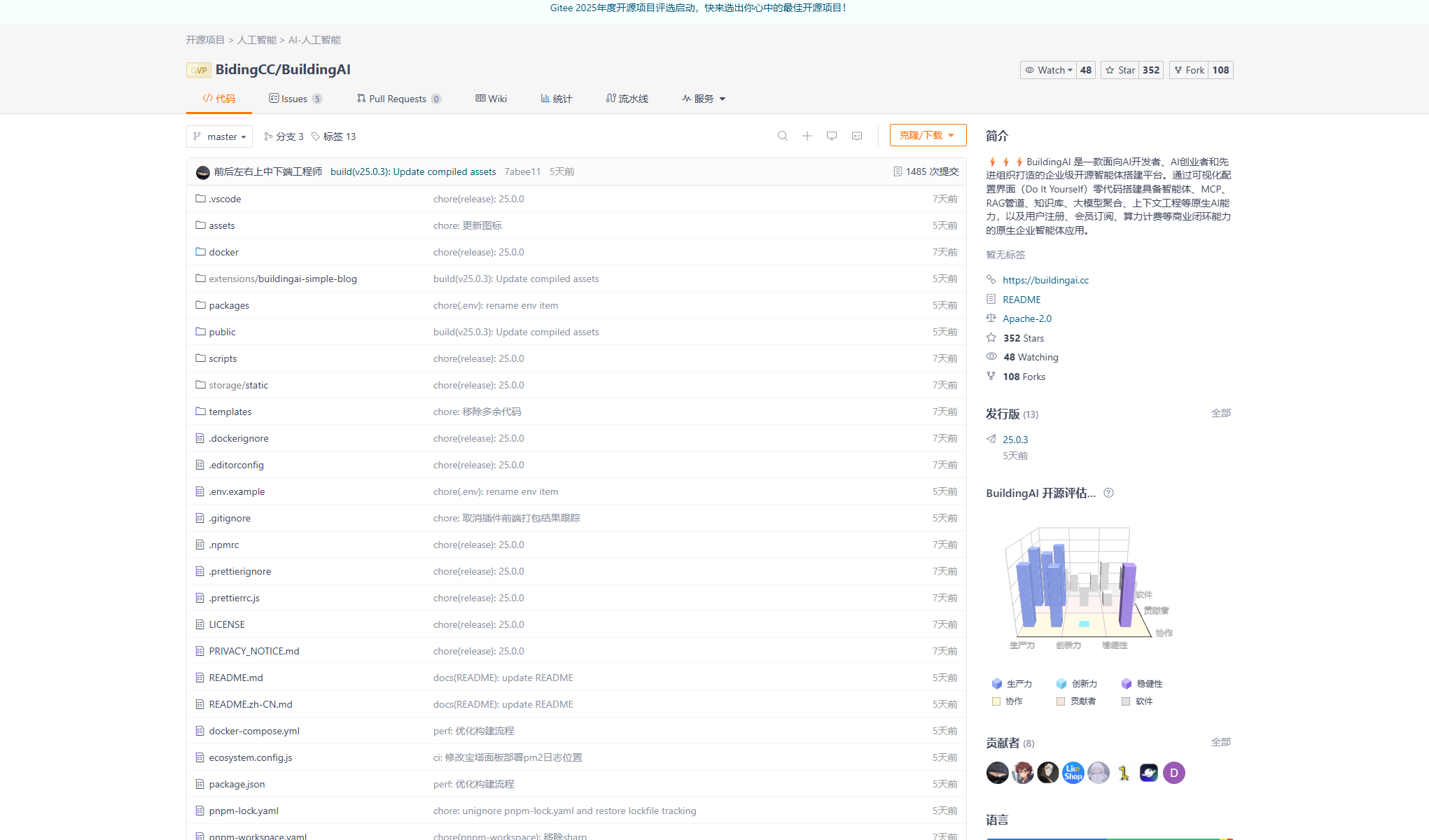 项目描述:BuildingAI是一款专为AI开发者、AI创业者和先进组织打造的企业级开源智能体构建平台,它通过可视化配置界面(DIY)提供零代码智能体构建工具,原生集成智能体、MCP、RAG管道、知识库、大模型融合及上下文工程等AI能力,同时具备用户注册、会员订阅、算力计费等商业闭环功能的原生企业智能体应用解决方案。