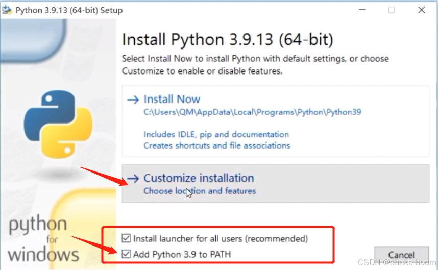 打开安装包,下面红框中的两个都要勾选上,默认只勾选其中一个。然后点击"Customize installation"自定义安装,一直"next",直到安装路径的选择。
