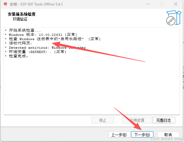这里会有一个系统检查,显示"检查完成"后,再点击"下一步"。