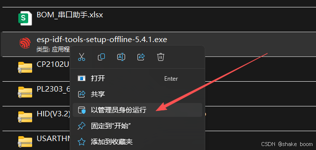 选择最新的版本IDF,然后下载完成后,鼠标右击,选择"以管理员身份运行"