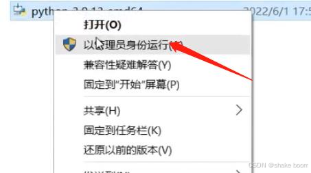 下载好后,选择python安装包,鼠标右键点击,选择"以管理员身份运行",即可开始安装python,下面设置一些小配置。