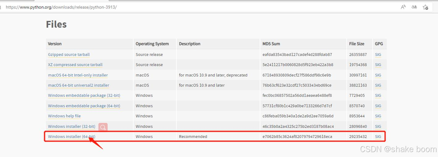 找到红框箭头处------windows64位的安装包,点击即可下载python安装包。