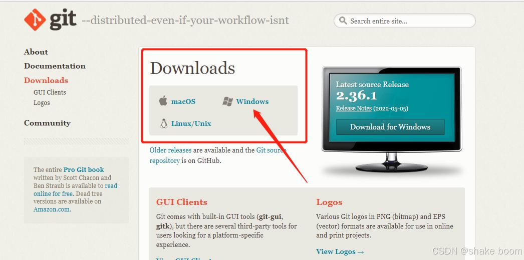 在红框内选择git的安装系统,上面有三个操作系统的选择,本次教程使用的是Windows。