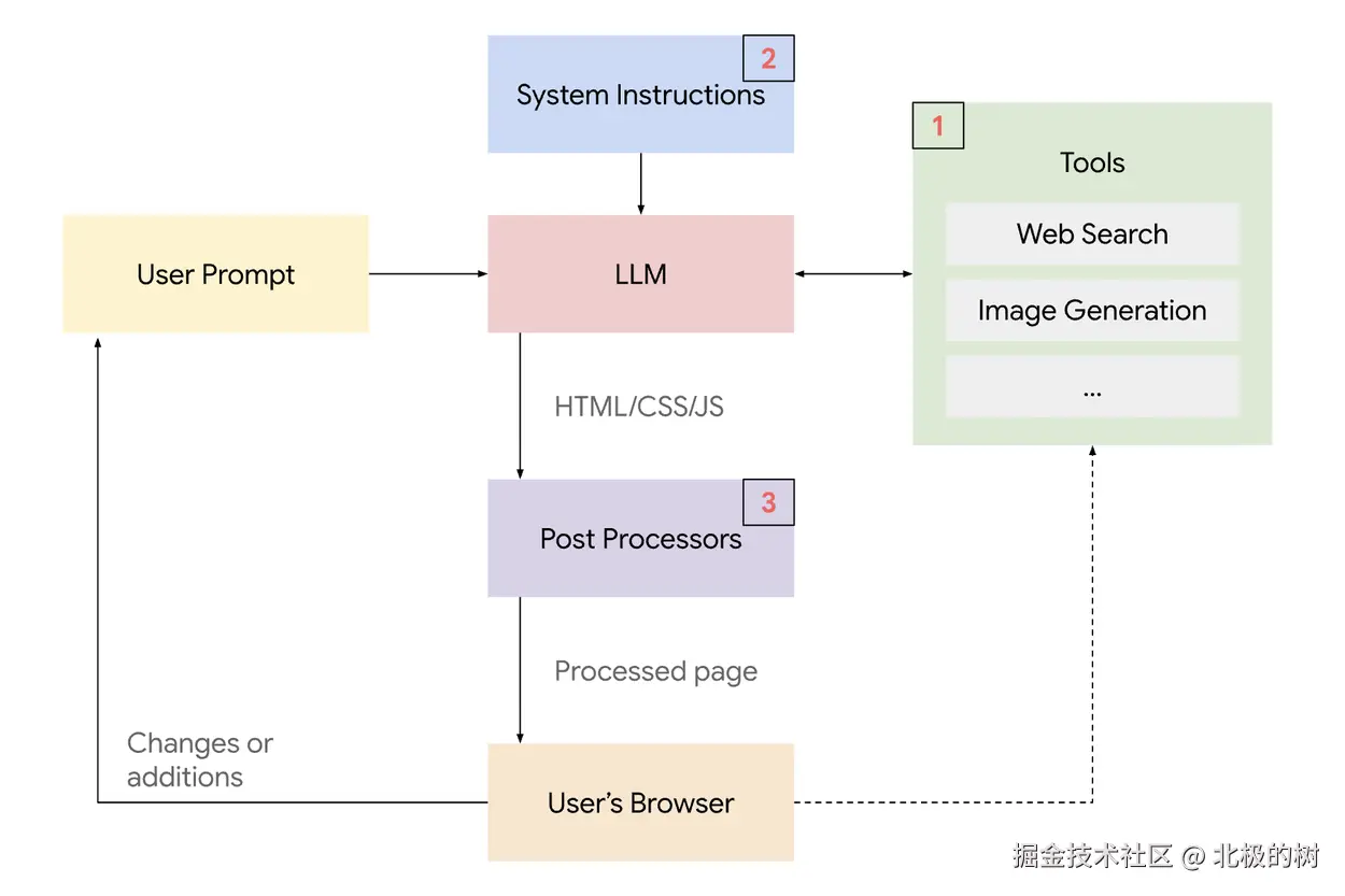 Gemini 3.0是核心引擎。它负责理解用户的自然语言输入,分析意图,然后从组件库中选择合适的组件,生成最终的UI代码(通常是HTML/CSS/JavaScript)
