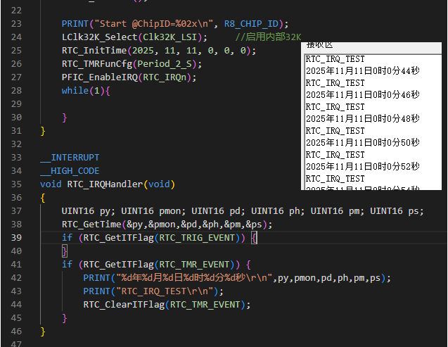 RTC_InitTime(2025, 11, 11, 0, 0, 0); //RTC时钟初始化当前时间