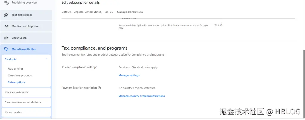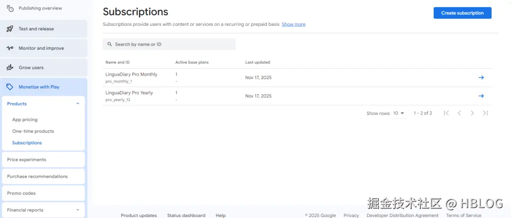 注意:Google Play 必须先上传一个 APK/AAB 后,才会解锁订阅页面。