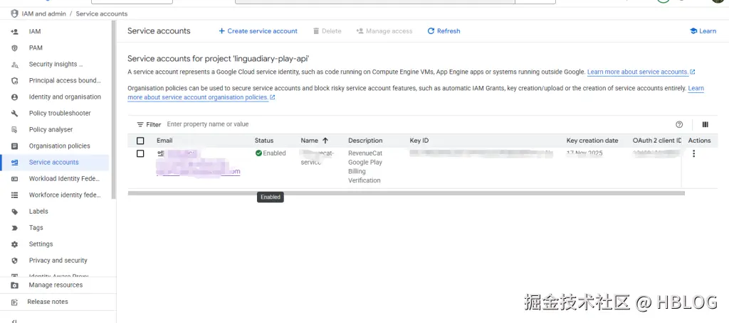三、在 Google Cloud Platform 生成 Service Account JSON(最关键)