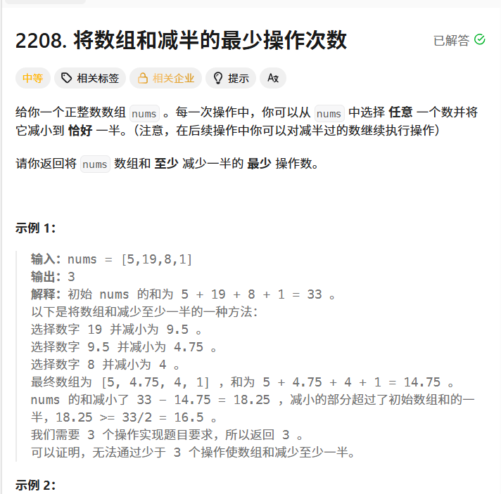 2208. 将数组和减半的最少操作次数 - 力扣(LeetCode)