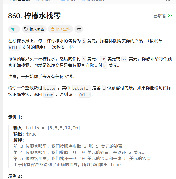 在找20元的时候使用了贪心算法," 尽可能的找10+5,而不是5+5+5".