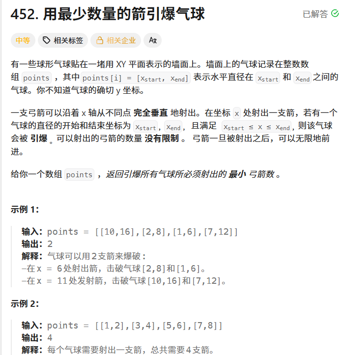 452. 用最少数量的箭引爆气球 - 力扣(LeetCode)