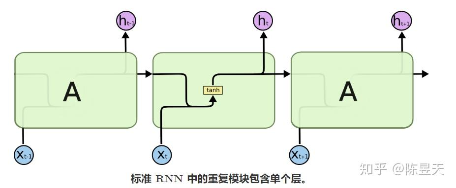 一个普通的,使用tanh函数的RNN可以这么表示: