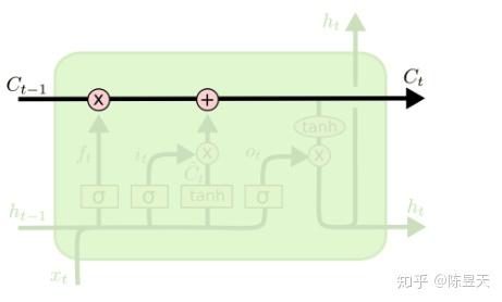 LSTM能够从RNN中脱颖而出的关键就在于上图中从单元中贯穿而过的线 ------神经元的隐藏态(单元状态),我们可以将神经元的隐藏态简单的理解成递归神经网络对于输入数据的"记忆",用 𝐶𝑡 表示神经元在 𝑡 时刻过后的"记忆",这个向量涵盖了在 𝑡+1 时刻前神经网络对于所有输入信息的"概括总结"