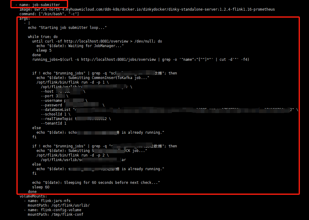 为 JobManager Pod 添加一个 submitter sidecar 容器,原理是监控启动的作业名称