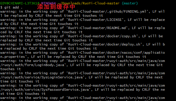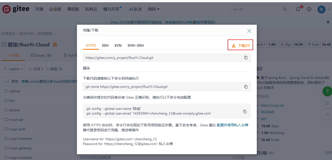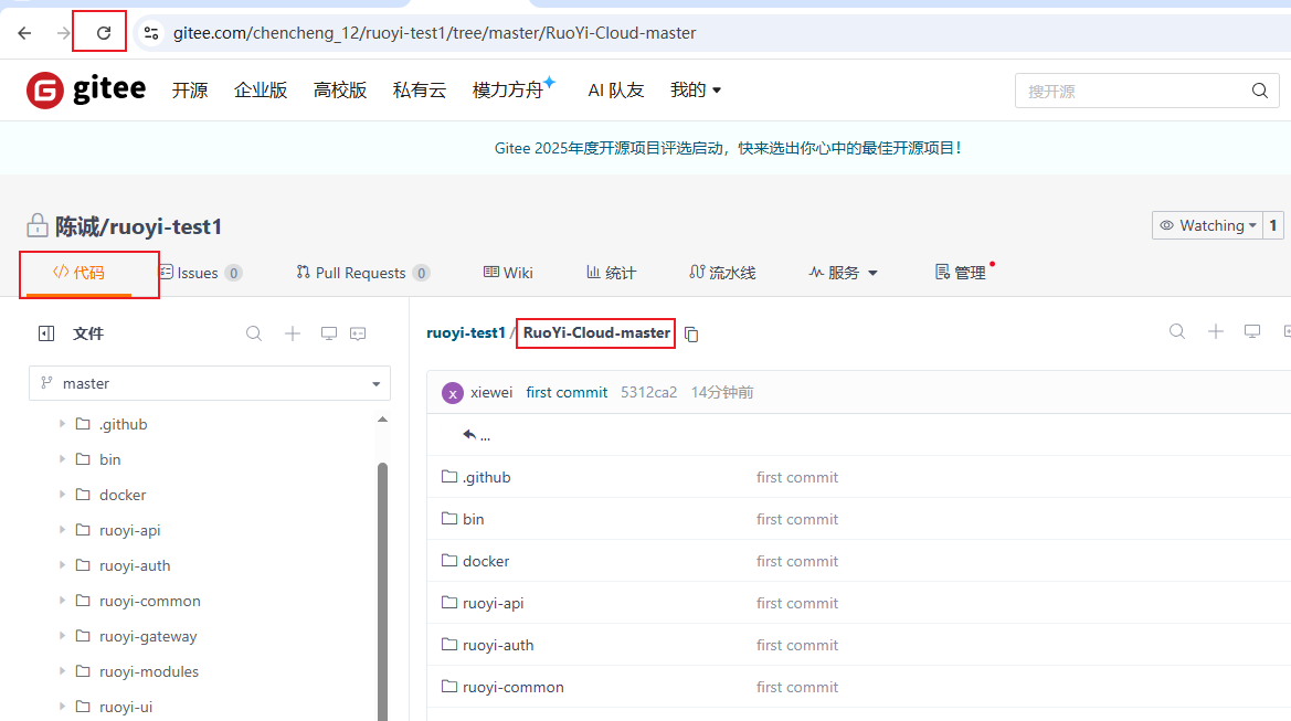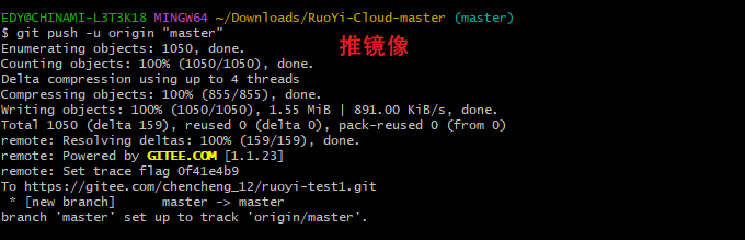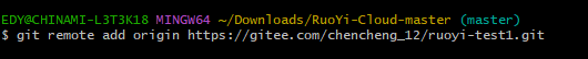 git remote add origin https://gitee.com/chencheng_12/ruoyi-test1.git 添加仓库地址