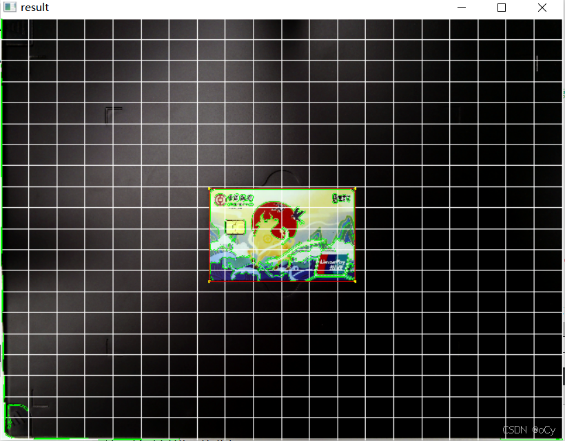 对一张图片描绘出20x20的网格(白色)、查找轮廓发现的全部轮廓(绿色),以及最小外接(物体)矩形(红色)。这是一个比较简易的调试物体轮廓的功能,以下是效果图