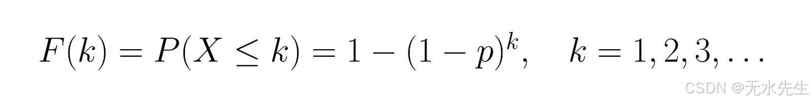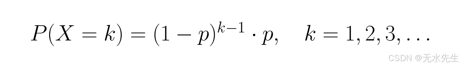 首次成功前所需试验次数 X 的概率质量函数 (PMF) 为: