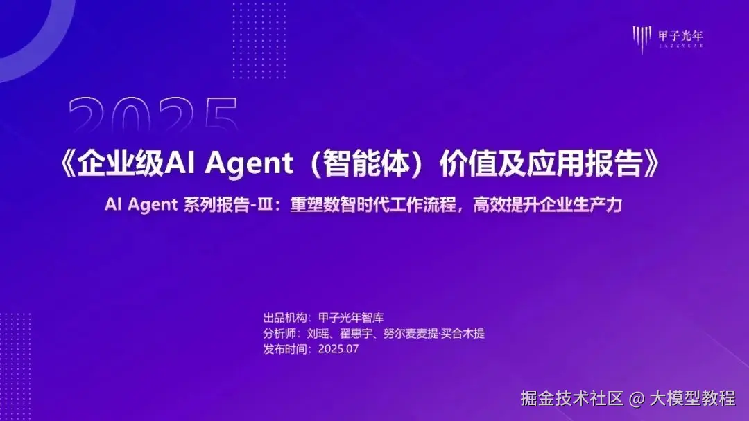 正是带着这些深刻的思索与探问,我们深度访谈了行业先行者,剖析了众多实践案例,最终汇聚成了这份70页+的报告------《企业级AI Agent(智能体)价值及应用报告》。