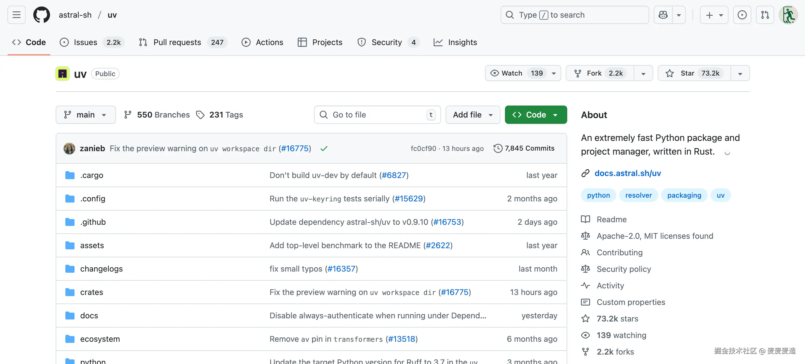 ✅ 自动管理虚拟环境与依赖锁定✅ 完全兼容 pip✅ 支持多 Python 版本共存与下载✅ 可替代 Poetry、pip-tools、pyenv、pipx 的组合