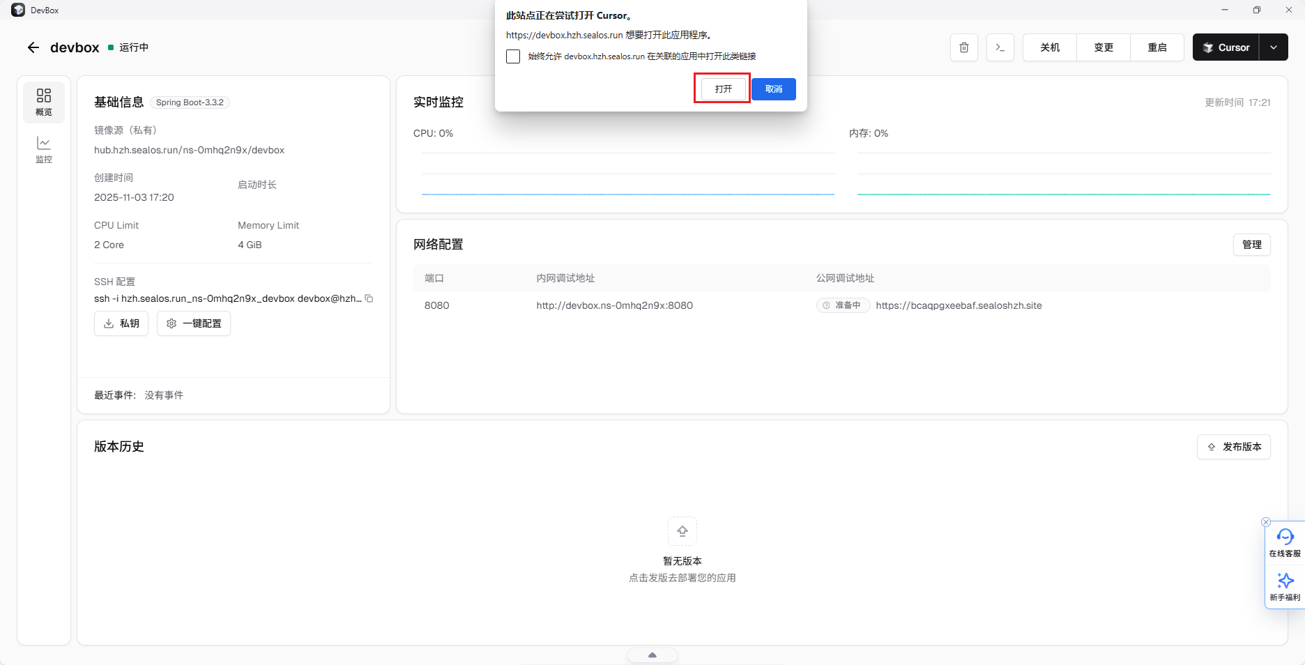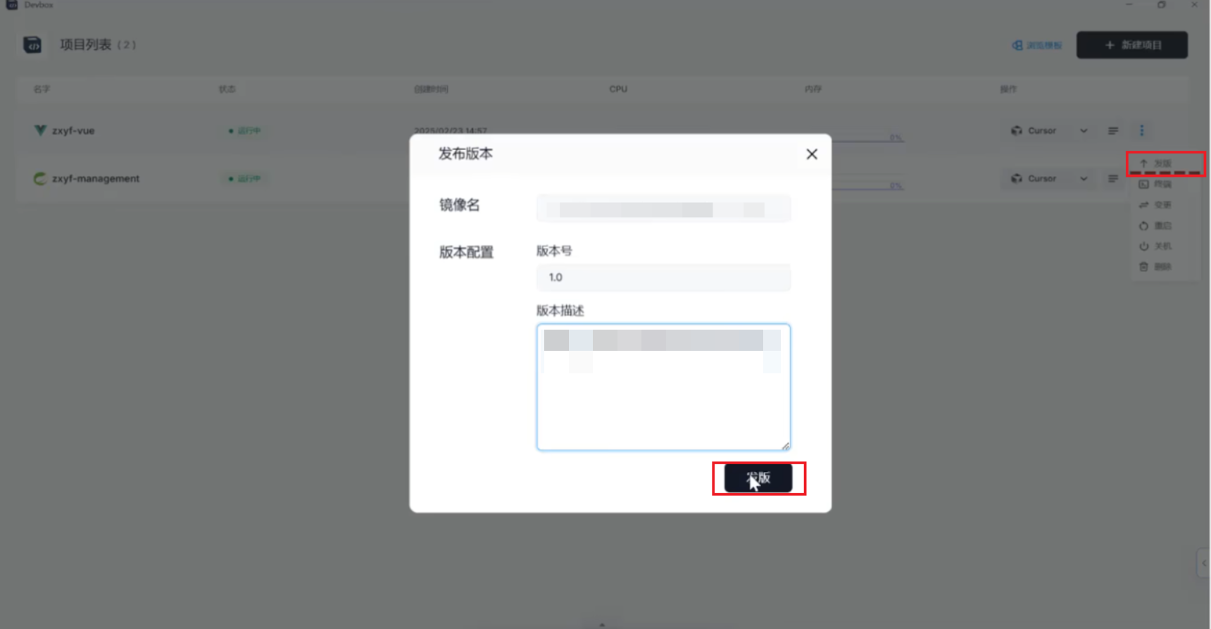 在 Devbox 项目详情页点击「发布版本」