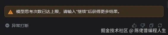 要一次生成10个页面还是比较难,过程中,Trae 出现两次思考次数达到上限,需要输入"继续"才能进行。