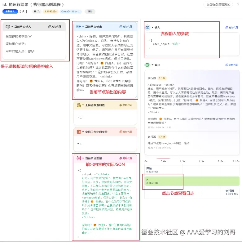 - 添加模型节点:使用配置好的本地模型或者调用外部的模型