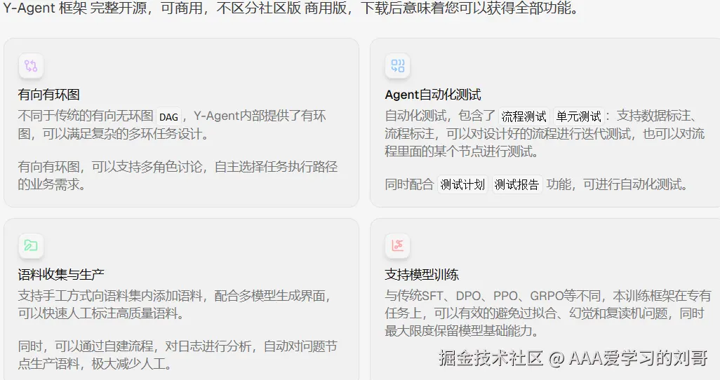 小贴士 :Y-Agent Studio官网已提供详细文档和快速开始指南,访问y-agent.cn即可体验。