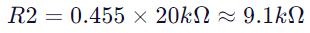 推荐使用标准阻值:R1 = 20kΩ,R2 = 9.1kΩ 或 10kΩ