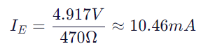 → 与实测 10.1mA 略有偏差,是由于三极管压降并非0.7V。