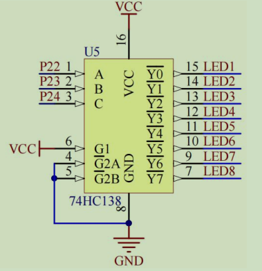 74HC138 译码器芯片,只需要单片机3个IO口就可以实现8个位选管脚的控制,节省了单片机 IO 口资源