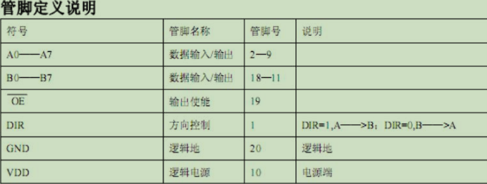 OE 使能管脚低电平,OE 使能管脚低电平,传输方向:B --->A 输出;