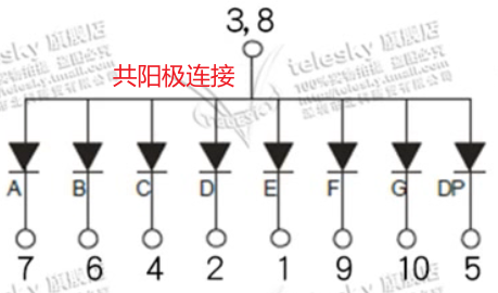 共阳极数码管:其在应用时将公共极(COM)接到+5v,当某一字段发光二极管的阴极为低电平时相应字段就点亮;