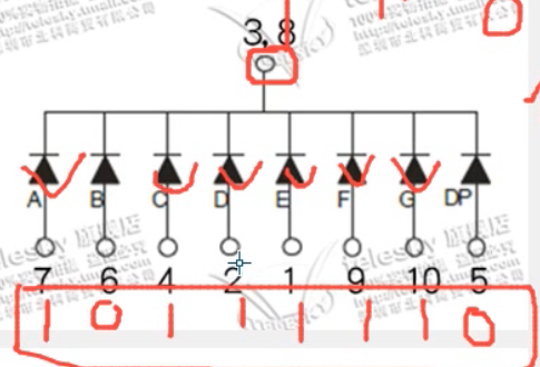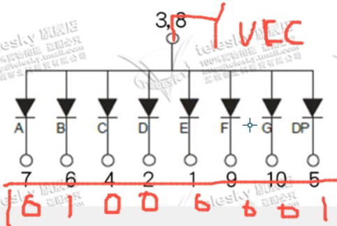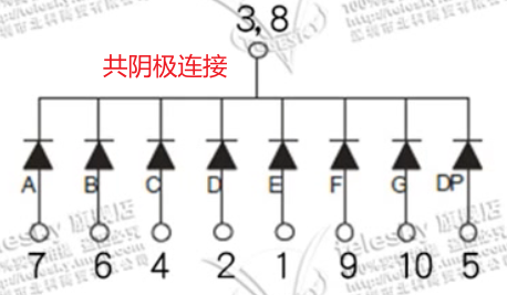 //共阴极接法:阴极接地,而8个段的阳极"独立",段引脚接高电平时,对应段点亮,低电平则熄灭