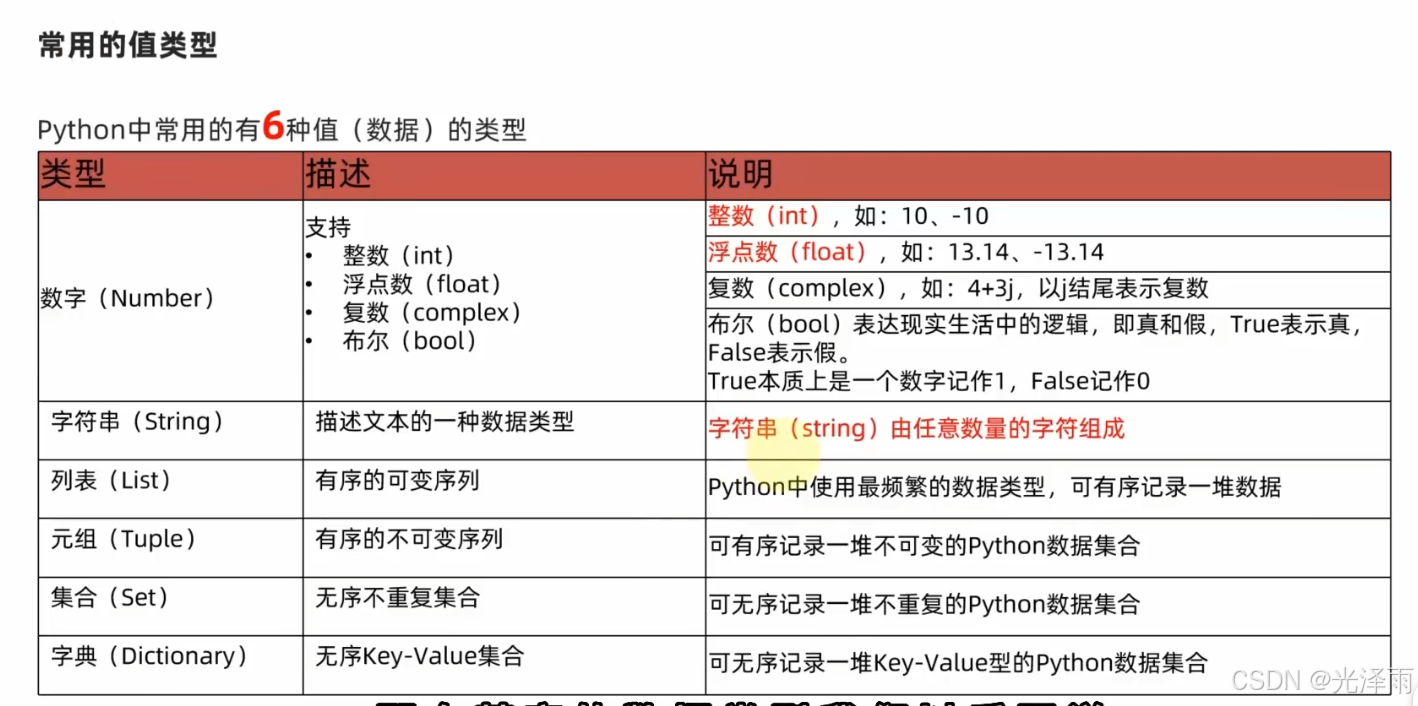 | string | 字符串类型 | 用引号起来的数据都是字符串 |