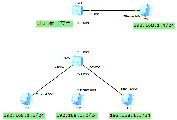 [SW1-G0/0/1]port-security enable #开启端口安全