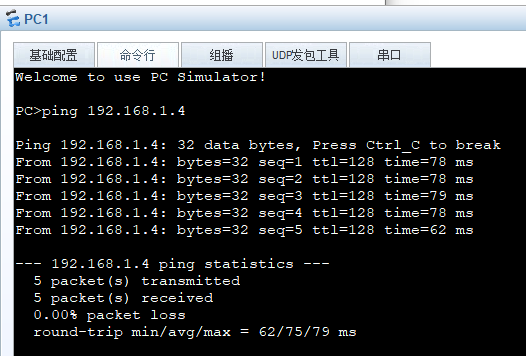 #测试PC1-3 和PC4的连通性配置端口安全-Sticky MAC地址表