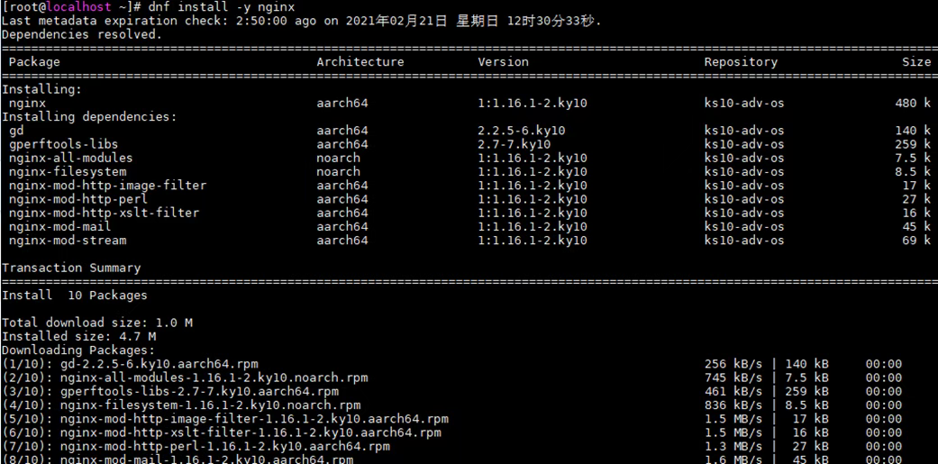 # rpm -ivh redis-5.0.7-1.ky10.aarch64.rpm