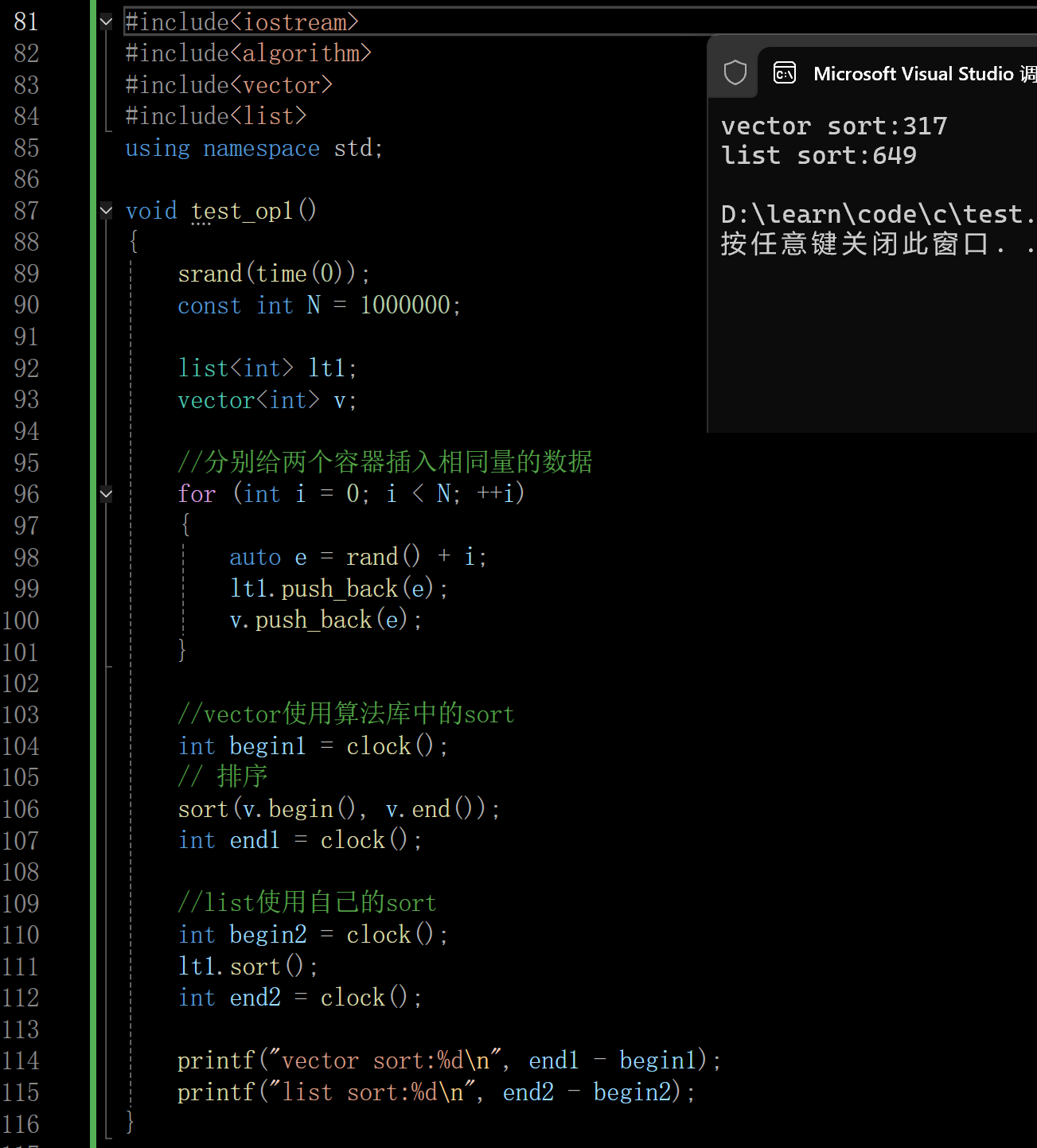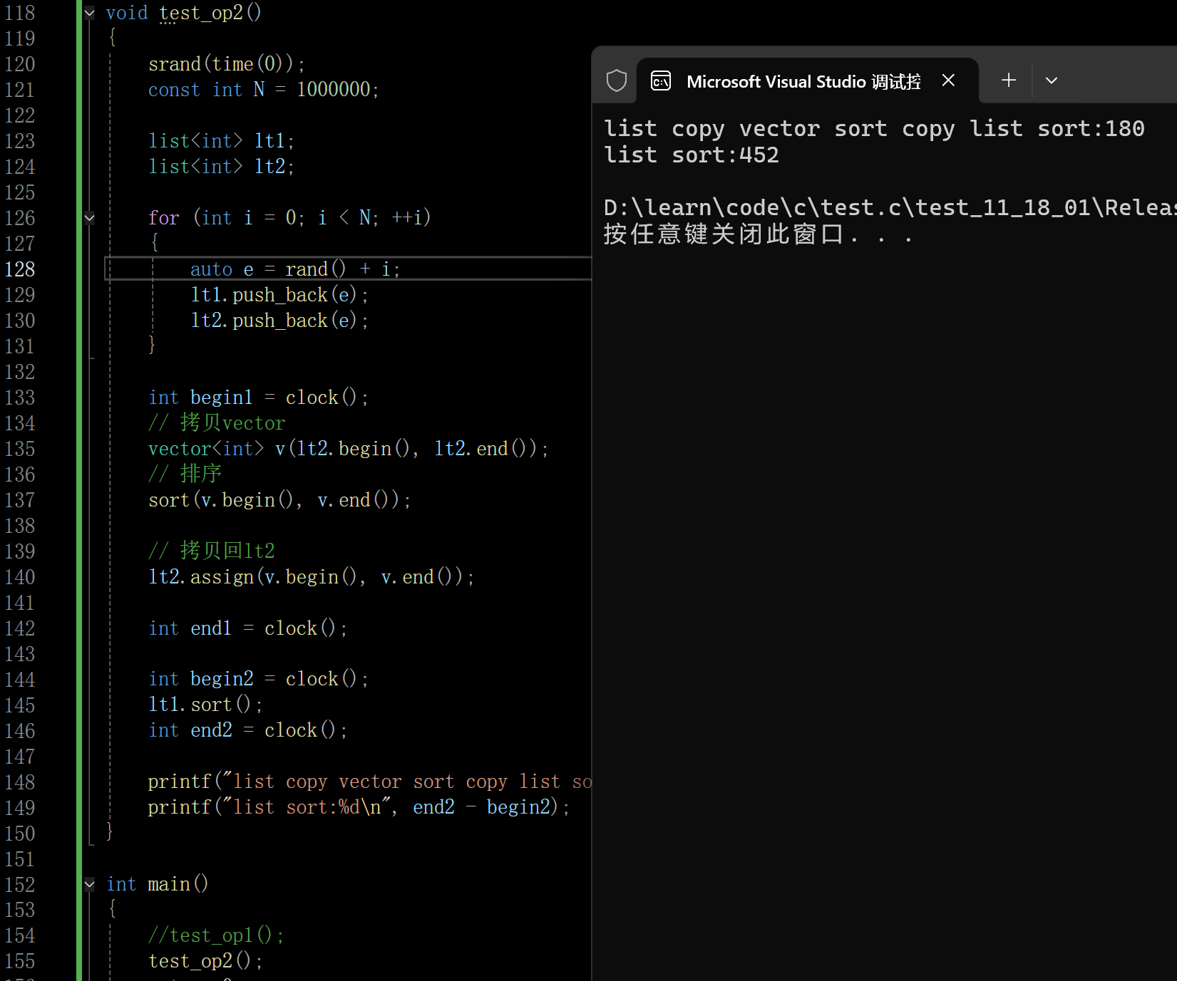 printf("list copy vector sort copy list sort:%d\n", end1 - begin1);