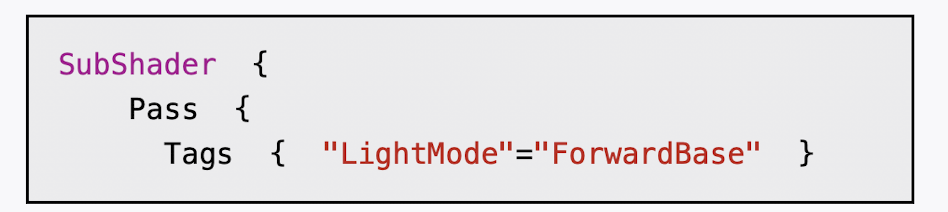 (3)我们在SubShader语义块中定义了一个Pass语义块,并且在Pass的第一行指明了该Pass的光照模式: