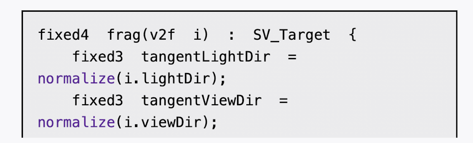 fixed3 halfDir = normalize(tangentLightDir + tangentViewDir);