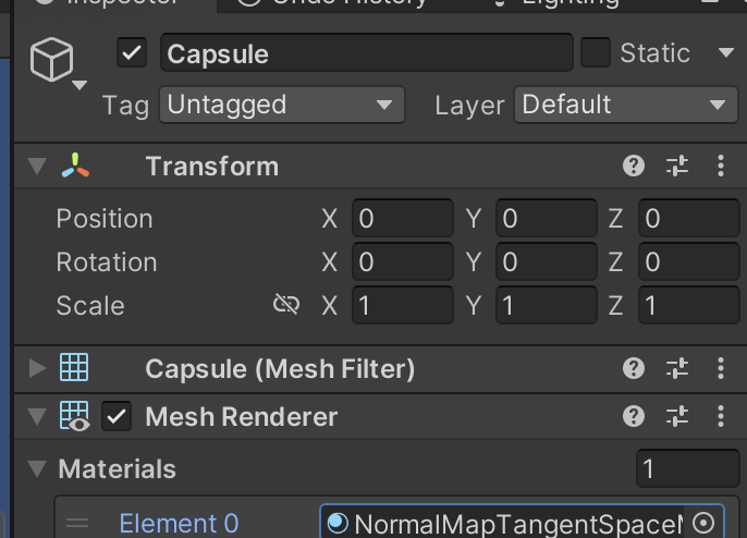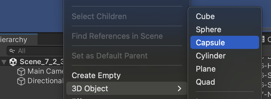 (4)在场景中创建一个胶囊体,并把第2步中的材质赋给该胶囊体。
