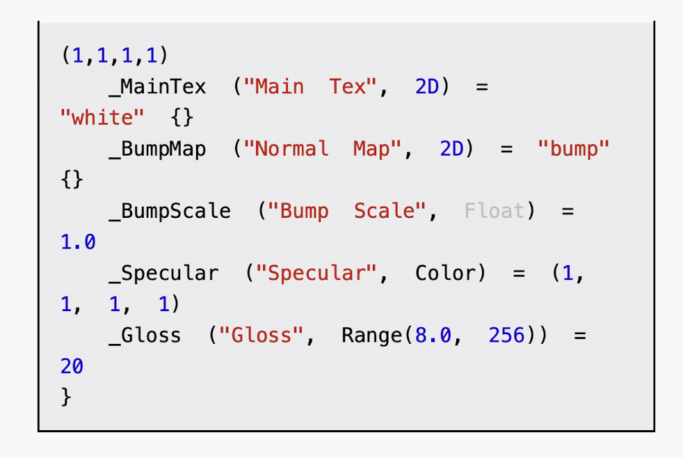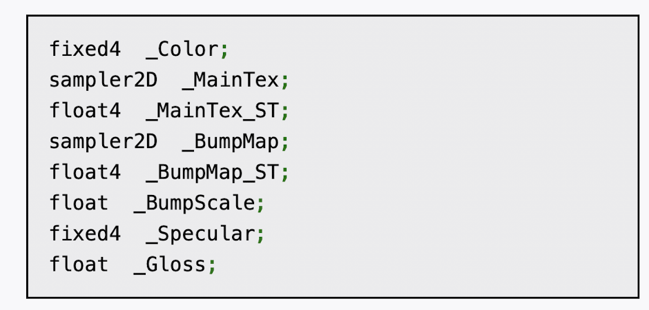 (2)然后,我们在Properties语义块中添加了法线纹理的属性,以及用于控制凹凸程度的属性: