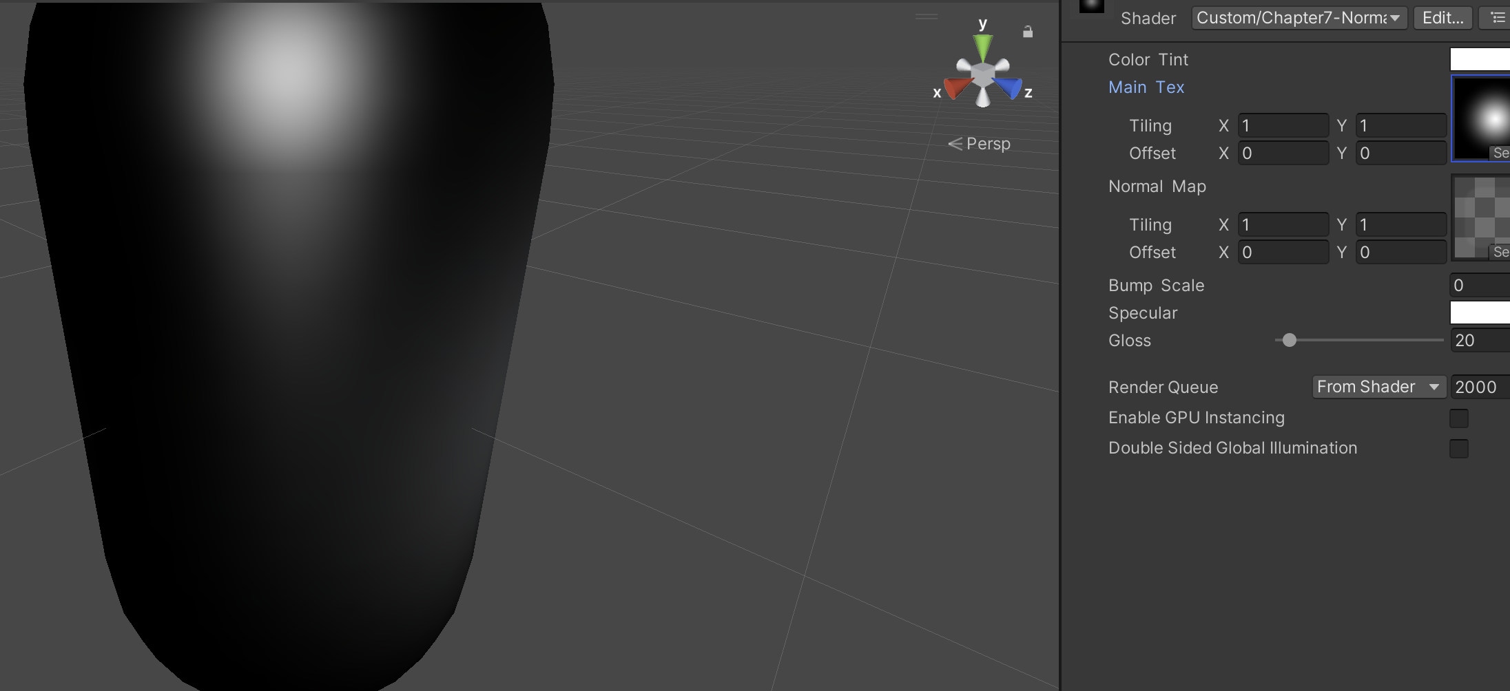 tangentNormal = UnpackNormal(packedNormal); //纹理类型标识成Normal map,使用Unity的内置函数UnpackNormal来得到正确的法线方向。