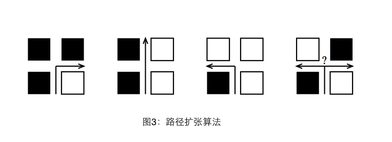 黑色和白色从右和左的转向方针有区别的原因是某些像素可能在路径分解的过程中颜色被翻转。黑白方针查看源像素颜色来决定转向的方向。(此段话不是很理解)