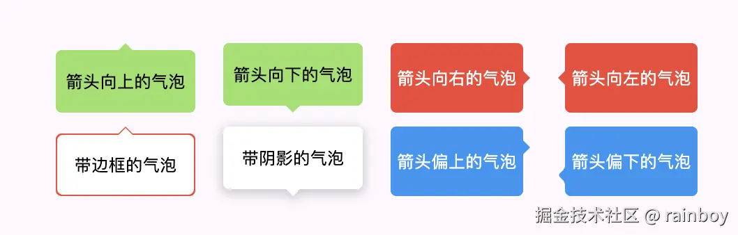 BubbleContainer,支持箭头方向、大小等属性。通过组合