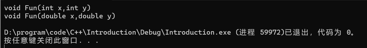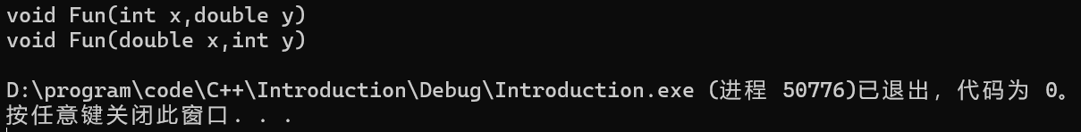 Fun(1);//此时既可以调用第一个函数,也可以调用第二个函数,存在歧义,会报错