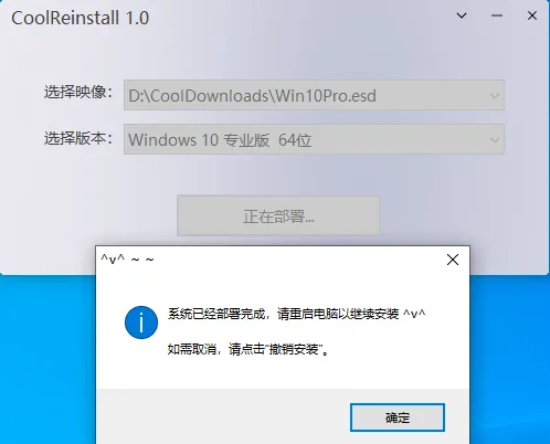 下载完后,就可以点击"确定"来重启电脑进行安装,如果你选错了版本或者不想重装了,叉掉之后,点击"撤销安装"就可以了。