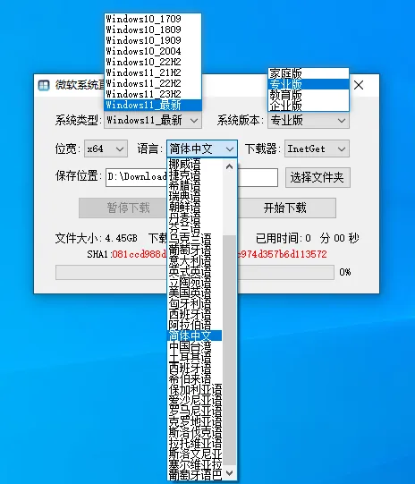 选择好版本直接下载就行了,左边一栏是系统版本,从Win10到Win11全都有;右边是版本号、语言、位宽