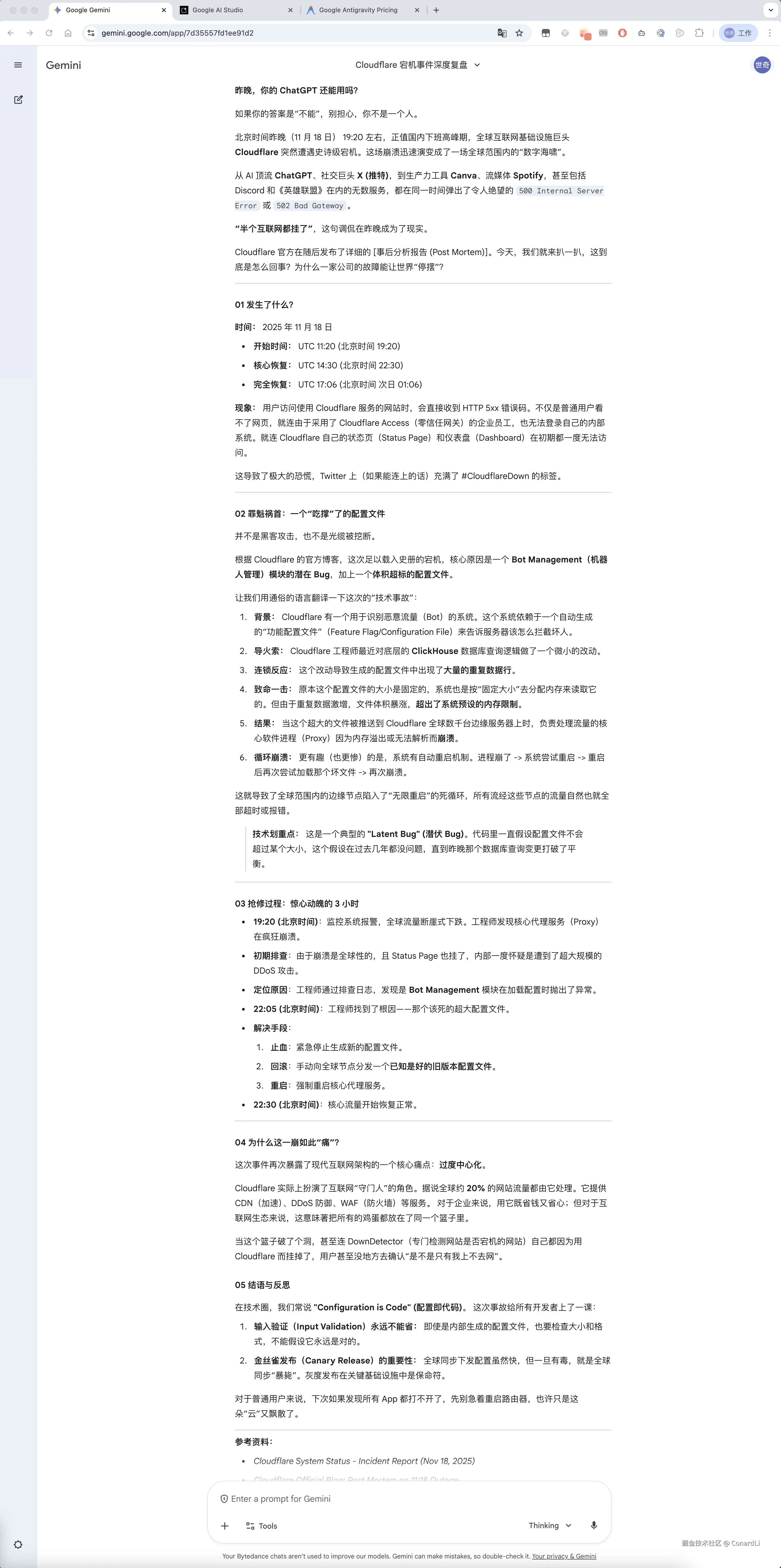 调研最新的 Cloudflare 崩溃事件,然后编写一篇公众号文章来介绍这个事件。注意文章信息的真实性、完整性、可读性。